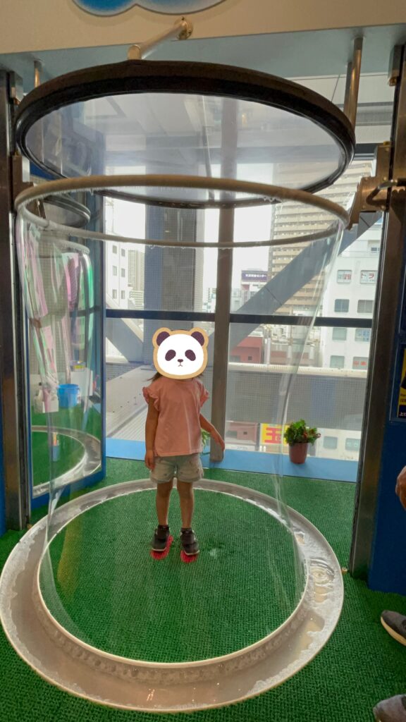 5階の目玉はシャボン玉遊びコーナーかなと思いました!スタッフの方によると午前中がおすすめだそうです。午前中も少し並びましたが(8組ほど)午後はもっと列が長いそうです。