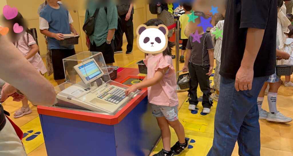 いろいろな仕事を体験できるのですが娘は特にキッズマートが楽しかったようです。買い物の疑似体験なのですがレジ操作後にレシートまで出てくるので私も驚きました。