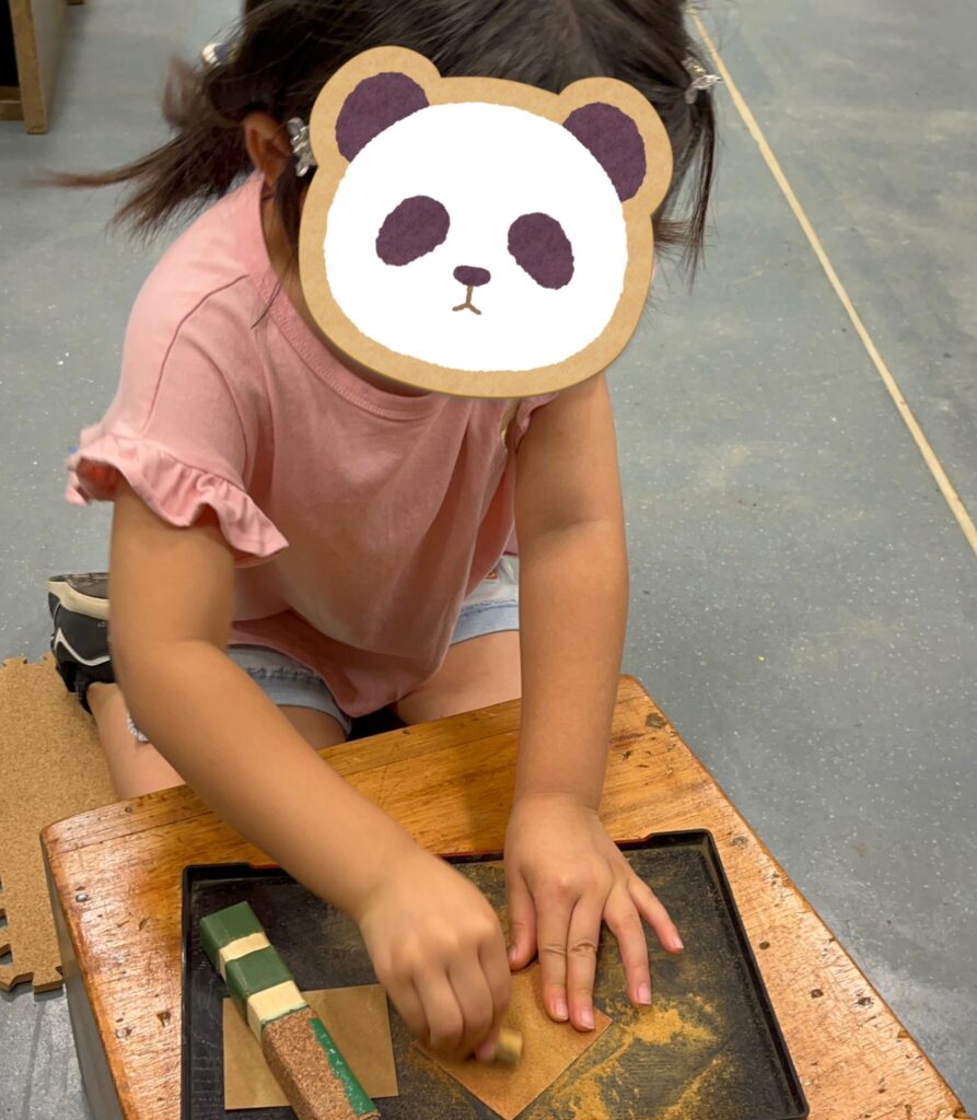 娘は創作工房で“みがくであそぼう”を体験して遊びながら木の変化を発見していました。