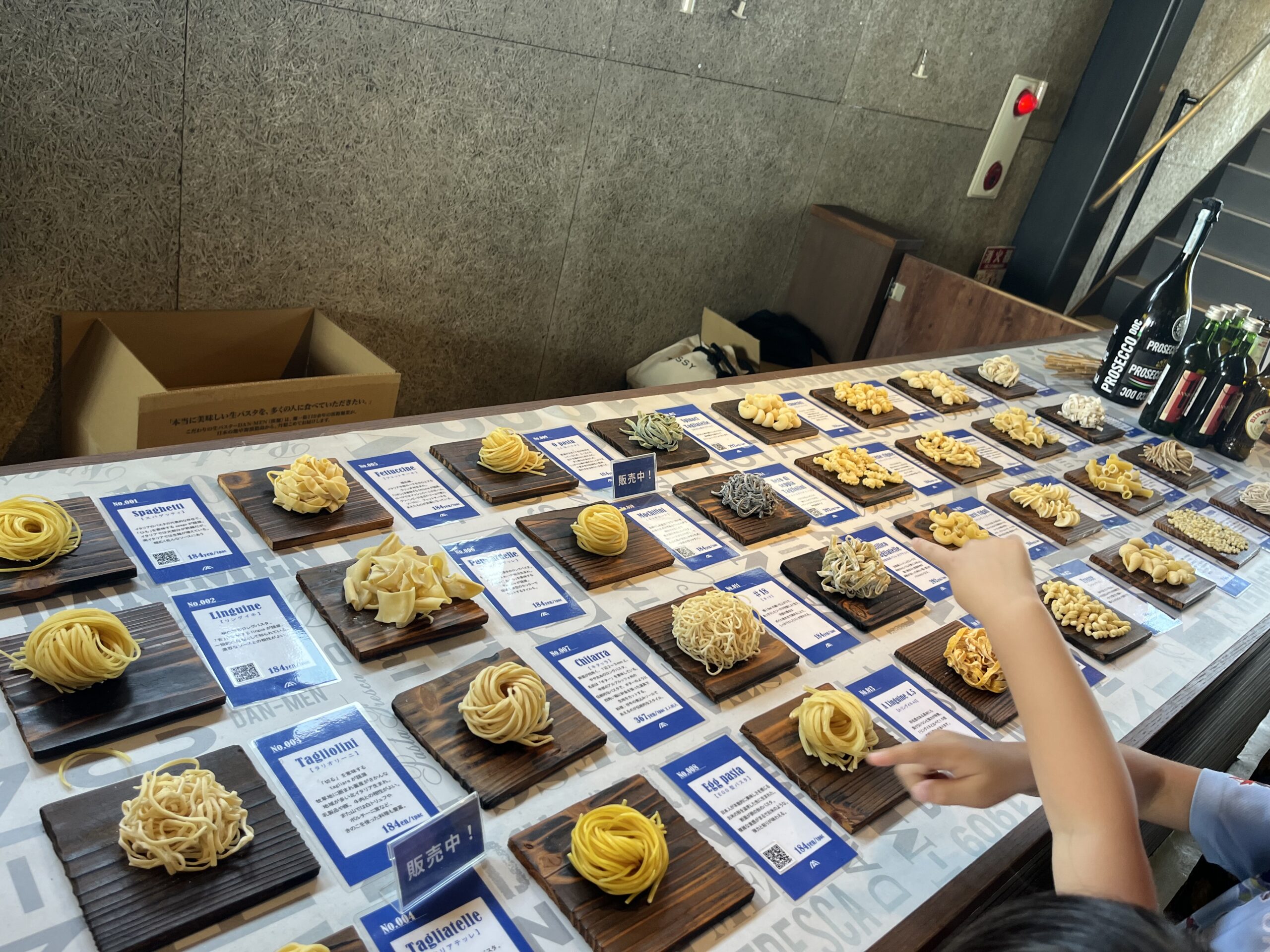 ・店内にはたくさんの種類のパスタの見本が並んでおり子どもたちはどれにしようかなーっと大興奮でした✨もちろん大人もテンション上がりました♪