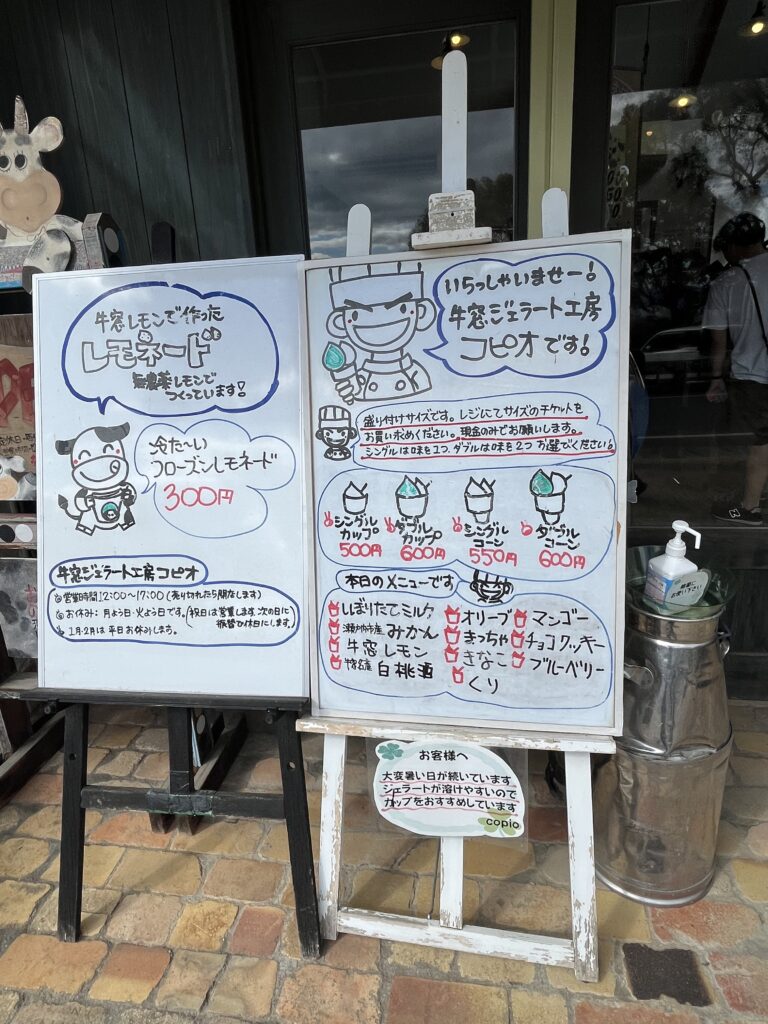 オリーブ園を後にして、車で5分ほどのところにあるジェラート工房コピオへ。自家牧場のしぼりたて牛乳や地元のフルーツを使った、やさしい味わいの手作りジェラートが人気のお店です♡